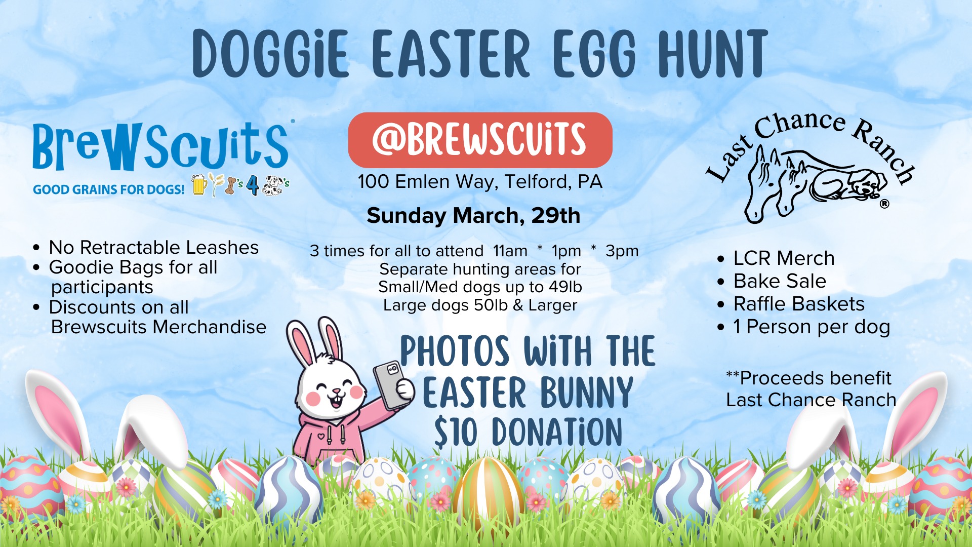 Mar 29 11:00 am - 3:30 pm Doggie Easter Egg Hunt @ Brewscuits Brewscuits 100 Emlen Way, Telford Event Details Get Directions